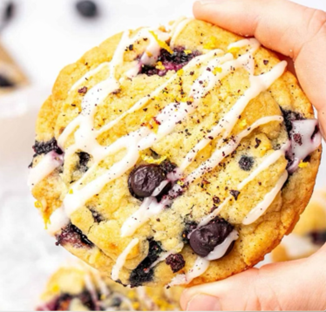 • Apply the glaze on top of the lemon blueberry cookies with the help of a piping bag or spoon. Then sprinkle the cookies with some lemon zest and freeze-dried blueberries.