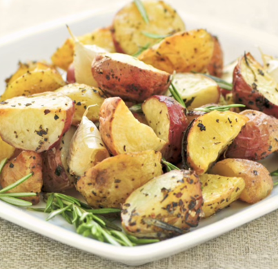 • Cover the roasting tin with foil and roast the potatoes for 70 minutes and then remove from the oven, remove the foil, and gently turn them.