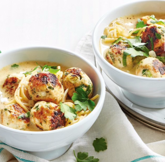 • Stir in the zucchini and cauliflower rice (but not the orzo if using, as this will go in later as it cooks faster), dill, parsley, and oregano. Add the chicken broth and return the meatballs to the pot. Bring the soup to a boil, cover, and reduce the heat to low and simmer for 10 minutes. If using orzo, add to the soup and continue simmering until the orzo is al dente, 7 to 9 minutes.